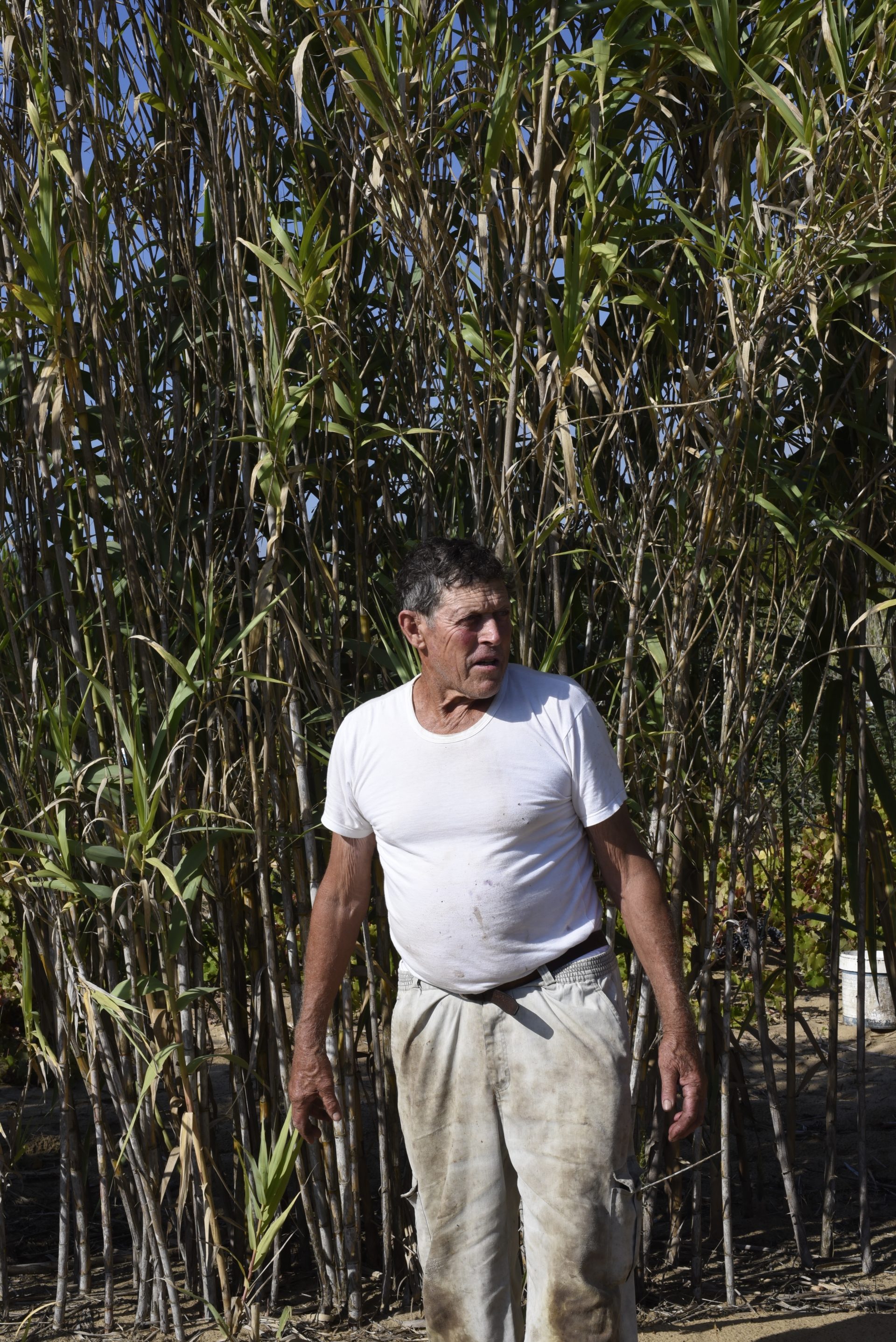Têm 80 anos, foram todas plantadas pelo meu pai. Estas que estão mais perto do canavial estão mais fracas. O canavial é bom por um lado, mas é mau por outro. Agora na poda, estou sempre a procurar, que isto tem de ser tudo cavado, tenho que andar aqui de gatas.